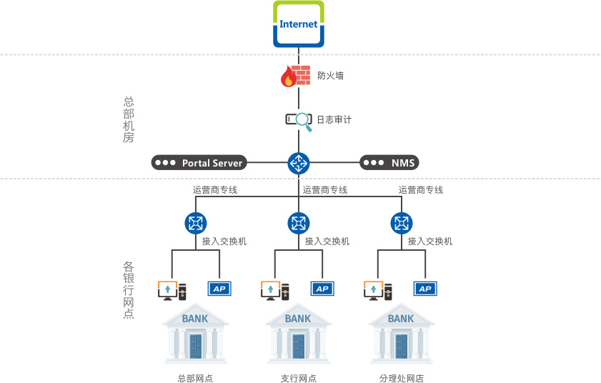 银行网络信息点多,用户复杂,需要安全性高、可管可控的无线网络。